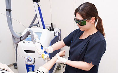 医療脱毛には専門的な知識が必要です。皮膚の知識が浅い看護師が照射を行うと、やけどや毛嚢炎、硬毛化などのリスクが高まります。当院では、皮膚科専門医の指示の下、皮膚のスペシャリストである看護師が丁寧に施術を行うため、安全に高い効果を得ることができます。